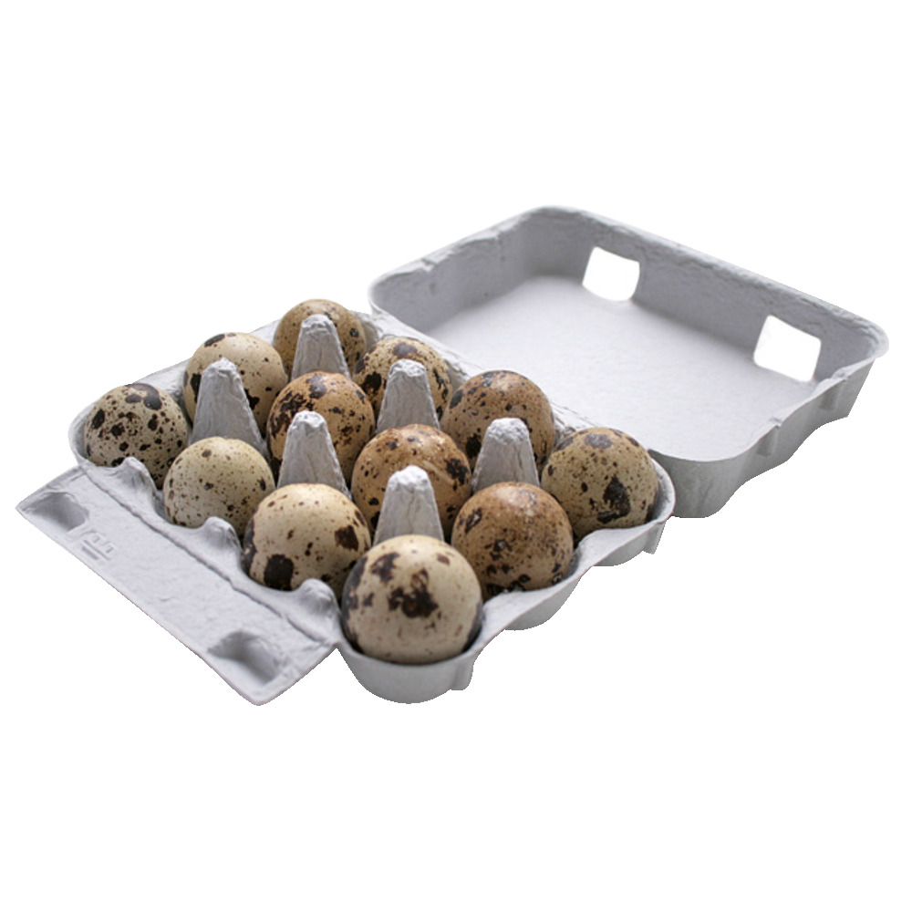 Eierschachtel aus grauem Karton, in dem 12 Wachteleier gut und sicher verstaut werden können. Ideal für den Markt, Direktvermarktung oder einfach nur zum Lagern der empfindlichen Wachteleier. Aus Karton, daher umweltfreundlich und recycelbar. Farbe: grau, Preis pro Stück.