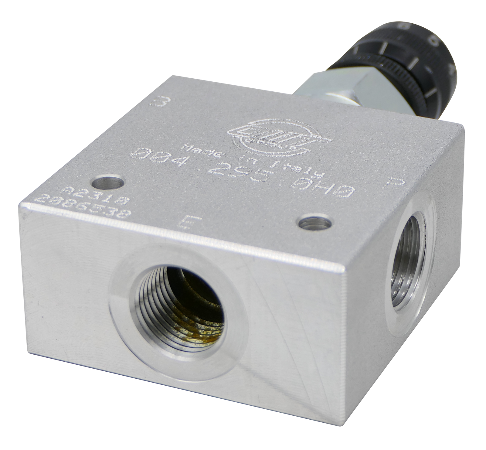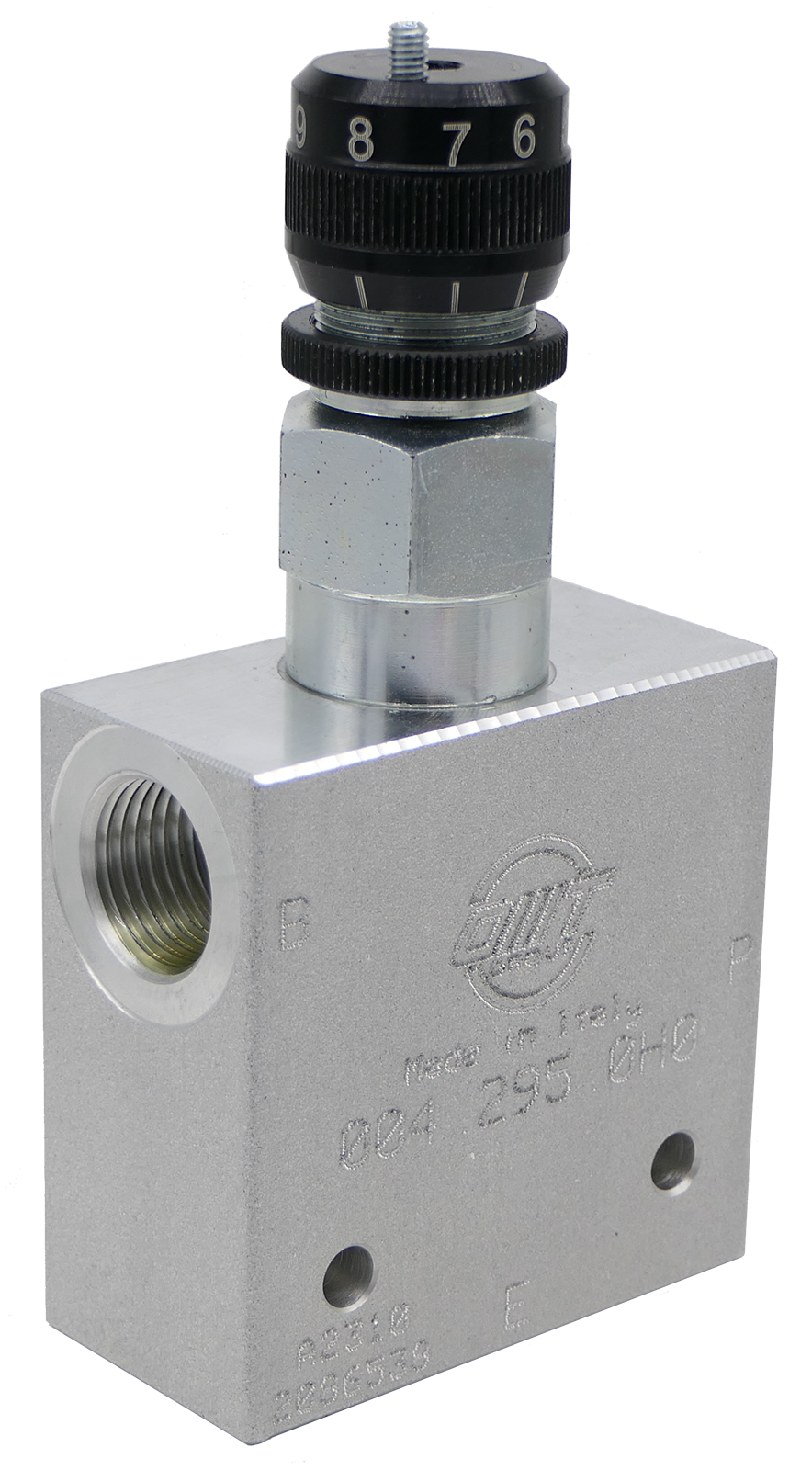 Das druckkompensierte 3-Wege-Drosselventil ermöglicht die Einstellung eines konstanten Flüssigkeitsstroms an Anschluss P unabhängig von Druckschwankungen. Der überschüssige Durchfluss wird an Anschluss B geleitet, der als zweiter Betriebsanschluss oder Rücklaufanschluss zu einem Behälter verwendet werden kann.Wenn Anschluss B als zweiter Betriebsanschluss verwendet wird, darf der Druck den Druck an Anschluss P nicht übersteigen.Nenngröße 6max. Durchfluss 60 L/min, geregelte Menge bis max. 30L/minmax. Druck 315 bar3-Wege DruckwaageBedienungselement: DrehknopfAnschlussgewinde: G1/2 ZollAnschlusserklärung: E = Eingang, P = geregelte Menge, B = Reststrom