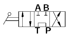 Das handbetätigte 4/3-Wegeventil INV hat die Funktion eines hydraulischen Steuerventiles. Das Umschaltventil kann zur Ansteuerung eines doppeltwirkenden hydraulischen Verbrauchers wie z.B. eines doppeltwirkenden Hydraulikzylinders verwendet werden. Das 4/3-Wegeventil ermöglicht die Umschaltung des Ölflusses vom Anschluss A auf Anschluss B.In der Mittelstellung sind alle Anschlüsse geschlossen. In dieser Schaltstellung ist der Durchfluss durch das Ventil gesperrt.