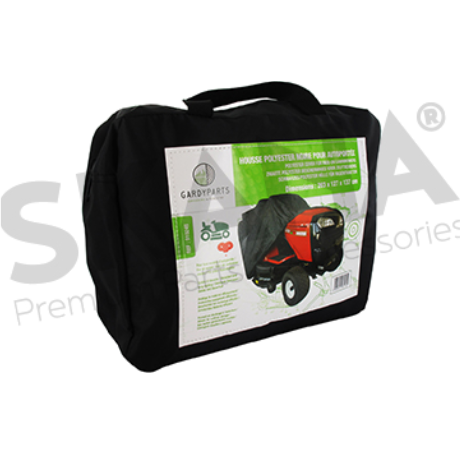 Abdeckung für Aufsitzmäher mit Heckauswurf aus schwarzem Polyester passend für extra große Modelle, für Abmessungen des Rasentraktor von bis zu 275 x 130 x 140 cm.