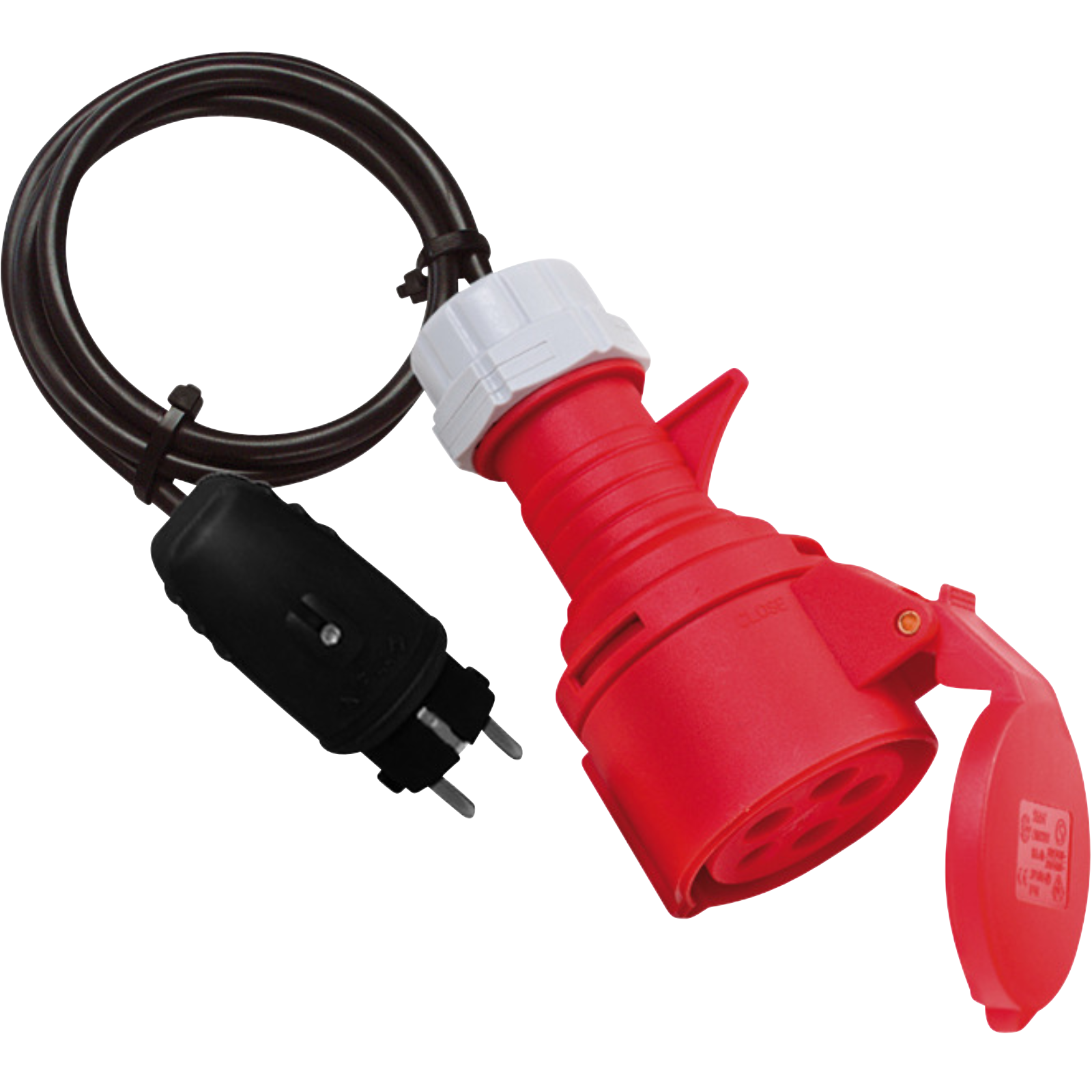Adapterleitung IP44 1,0m schwarz H07RN-F 3G2.5 mit Schutzkontakt Gummistecker und CEE-KupplungMit Schutzkontakt Gummistecker (230 V) und CEE-Kupplung (5-polig).Technische Daten:Kabelbezeichnung: H07RN-F 3G2,5Kabellänge: 1 mKabelqualität: Gummi-NeoprenMit FI-Schalter: NeinSchutzart (IP): IP44Geeignet für Außenbereich: Ja