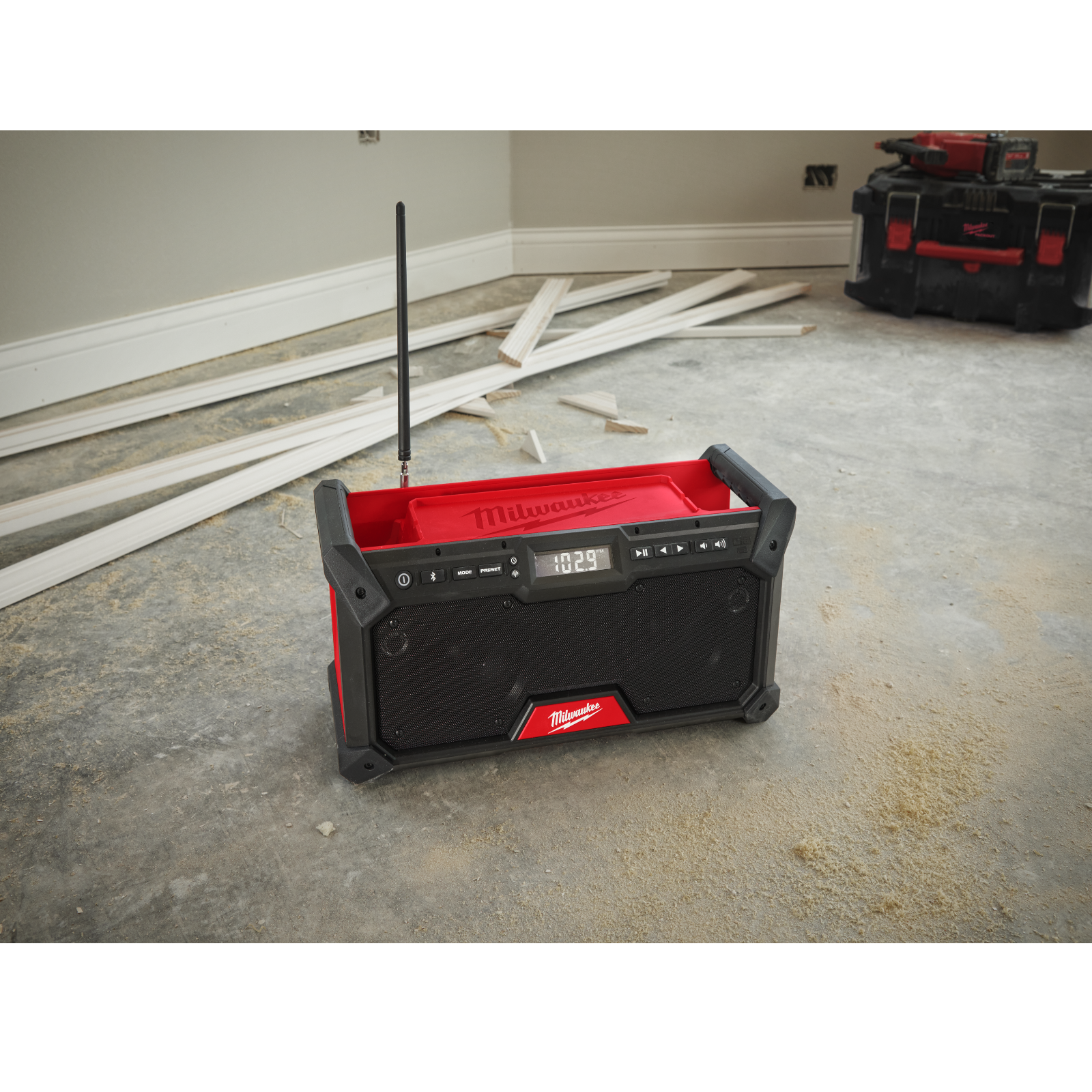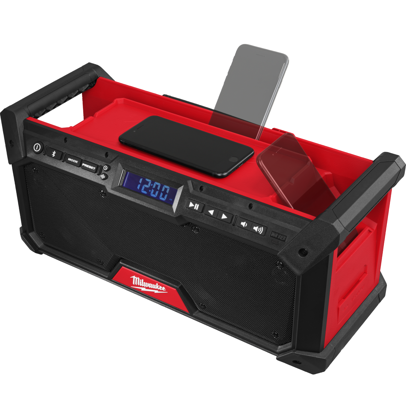 Stoßdämpfende Endkappen und Lautsprechergitter aus Metall schützen vor Stürzen, Wasser und Schmutz auf der Baustelle