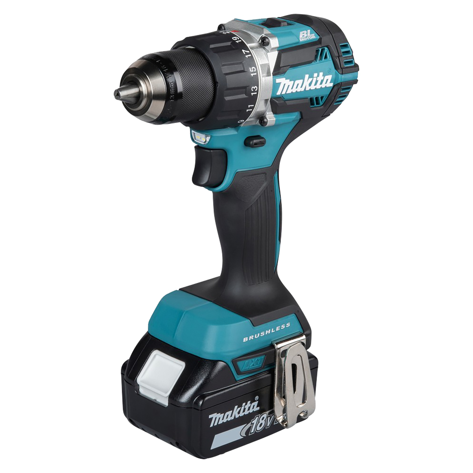 Hochwertiger LXT-Akku-Bohrschrauber mit bürstenlosem Motor für lange Lebensdauer ( kein Kohlenverschleiß) und hohen Wirkungsgrad = länger Akku-Laufzeit.