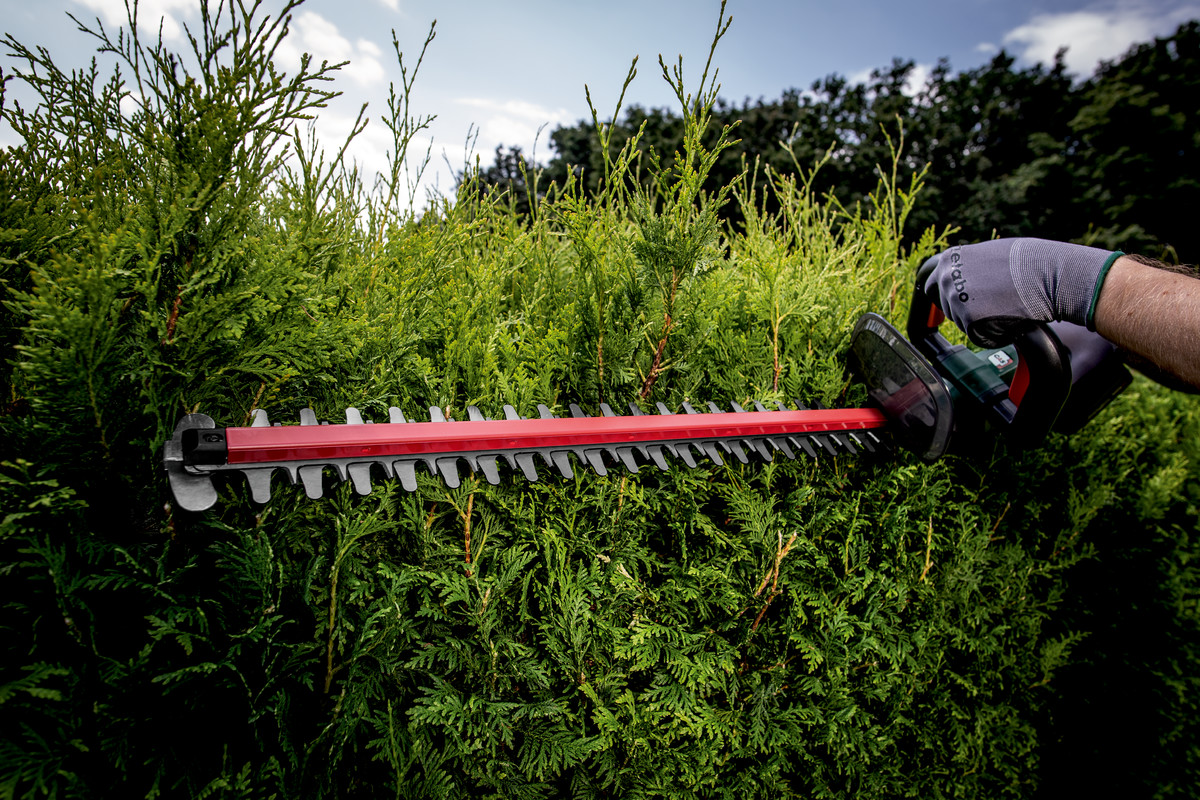 Extrem leichte und leise Akku-Heckenschere zum kräfteschonenden Trimmen von Hecken und Sträuchern