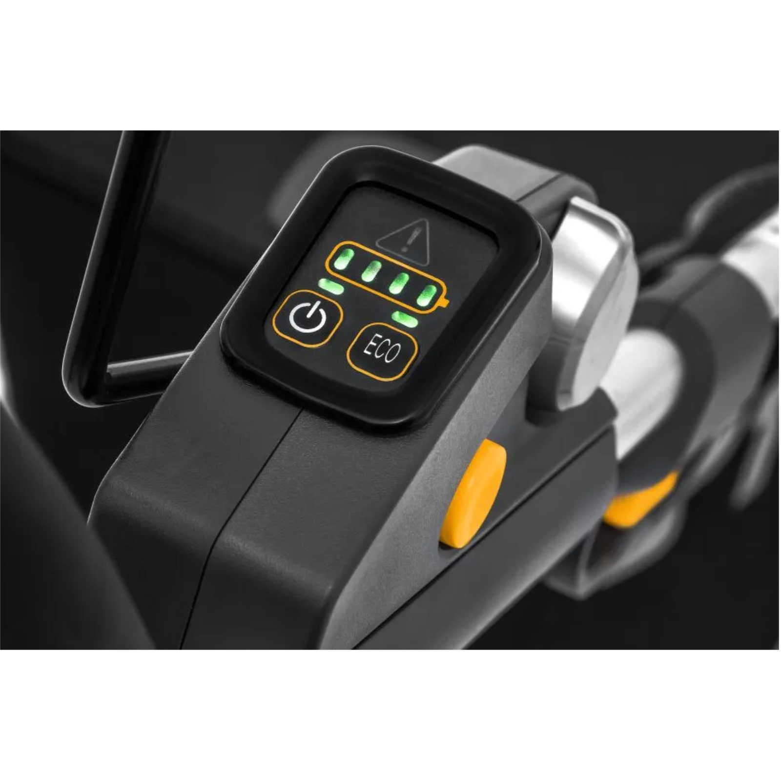 Der Rasenmäher wird von zwei leistungsstarken 48-V-Rasenmäherakkus mit 7,5 Ah und einem bürstenlosen 2,2-kW-Motor mit Eigenantrieb