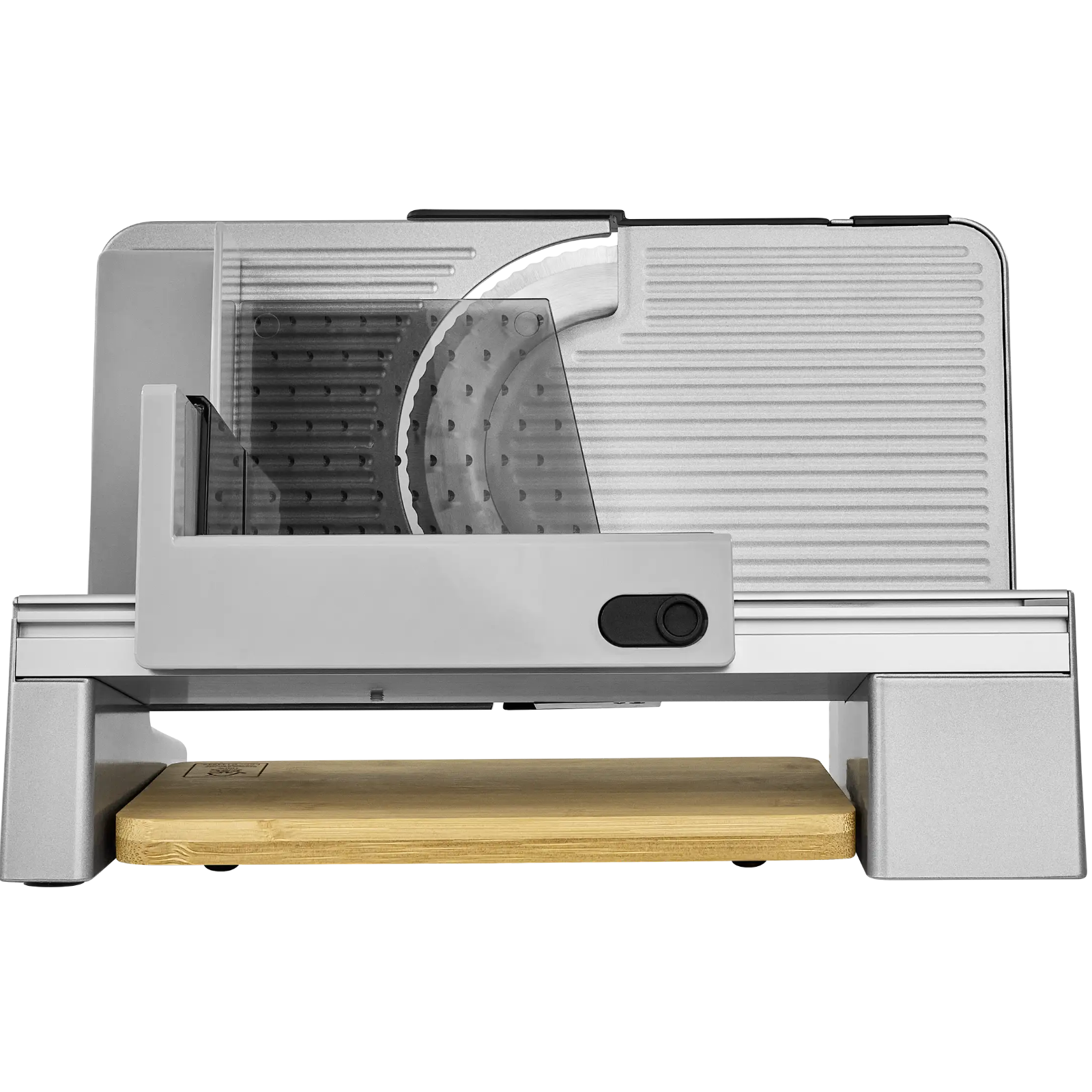 - FSC®-zertifiziertes Bambusbrett dient zum Auffangen des Schneidguts und gleichzeitig als Schneidbrett