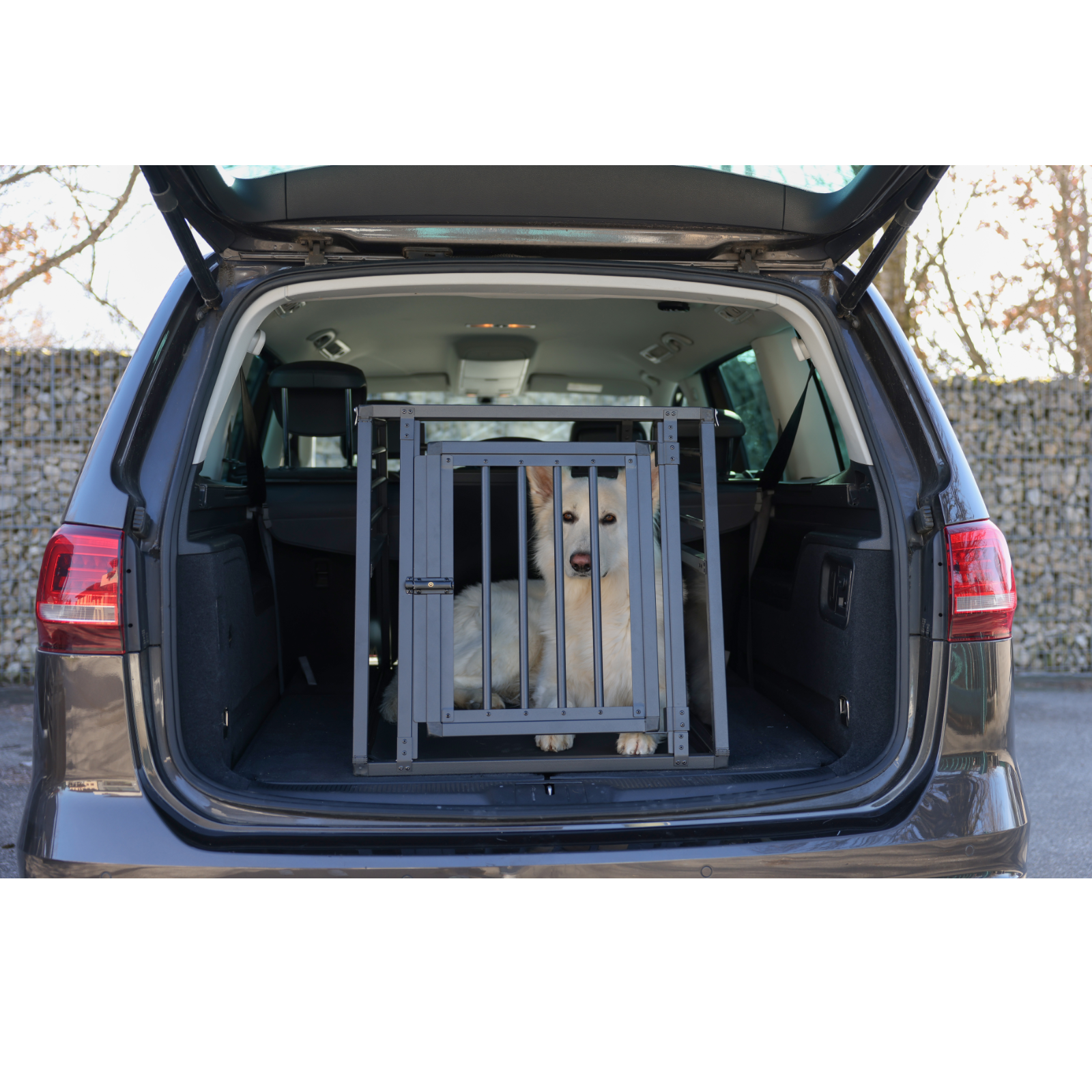 Die stabile eintürige Tranportbox wurde speziell für den Kofferraum konzipiert und ermöglich Ihnen einen stets sicheren und einfachen Transport Ihres Lieblings im Auto.