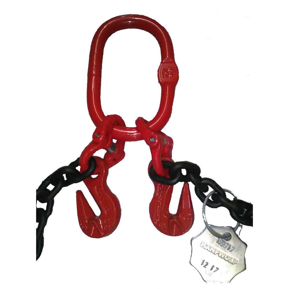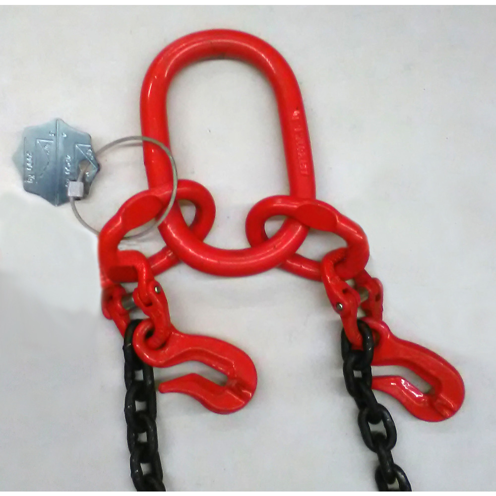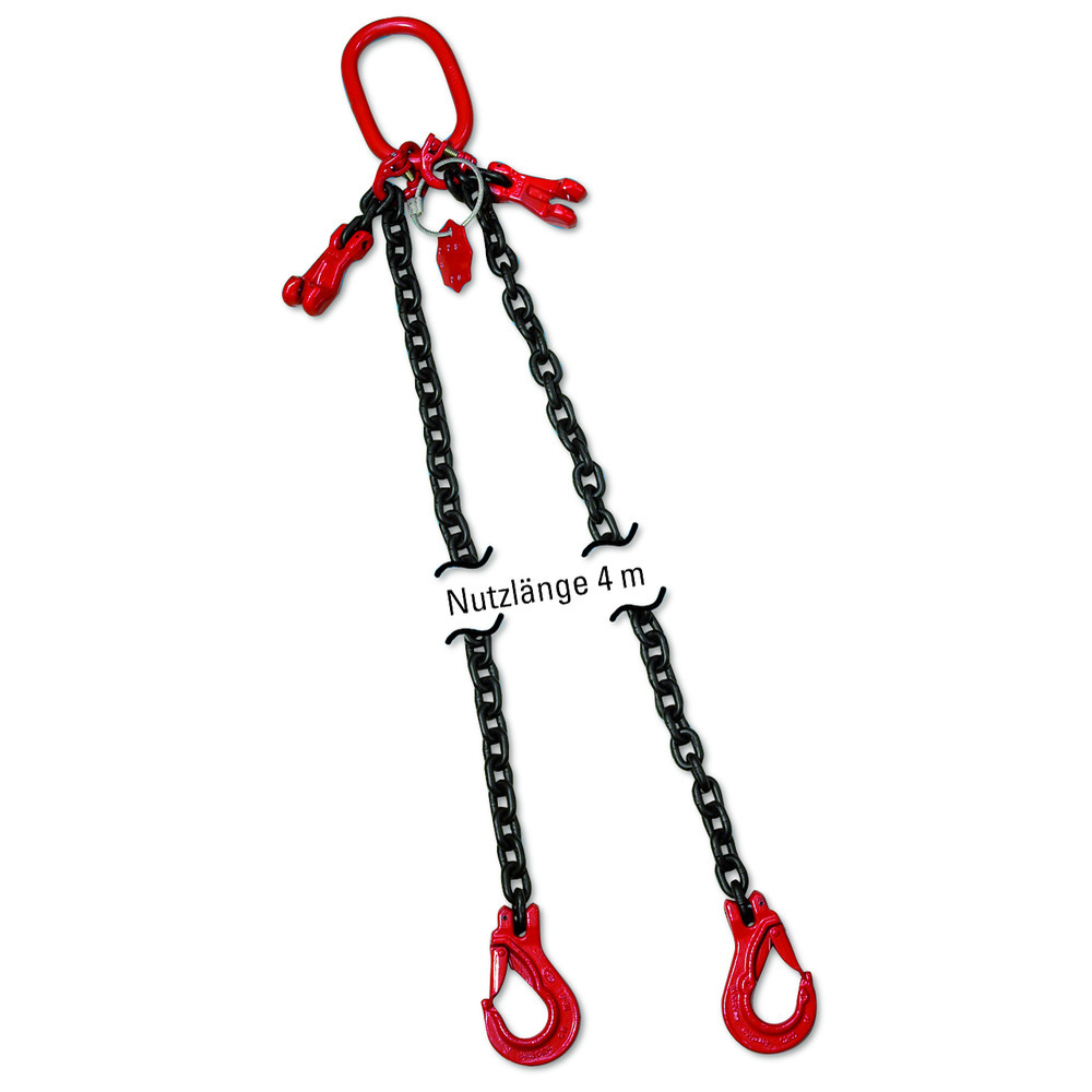 8 mm,4 Meter Nutzlänge mit zwei Verkürzungen, Ring und Lasthaken, mit Prüfplakette, Tragfähigkeit: bei 45° - 2800 kg, bei 60° - 2000 kg.