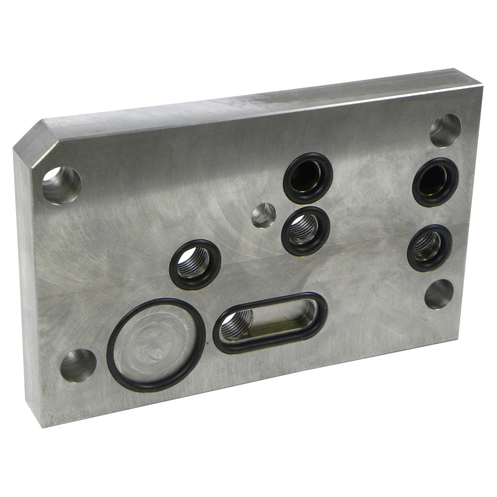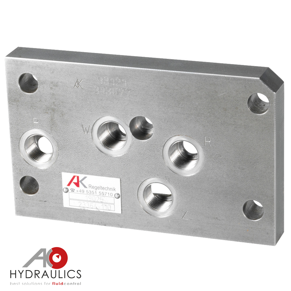 Diese Anschlussplatte wird als Ersatz für den Getriebedeckel montiert. Die Platte hat an der Oberseite 4 Hydraulikanschlüsse für P=Pumpe, R=Rücklauf, W=Druckweiterleitung und Z=Zusatzhubzylinder. Durch diese Platte besteht die Möglichkeit, ein extern montiertes Steuergerät anzuschließen.Falls kein Steuerventil mit Druckweiterleitung verwendet wird, wird der Anschluss W verschlossen. Um bei dieser Montage die Funktion der Traktorhydraulik zu gewährleisten, wird in der Druckleitung zwischen Anschluss P und dem Steuerventil ein Absperrhahn montiert. Dieser muss geschlossen werden, wenn die Dreipunkthydraulik verwendet wird.