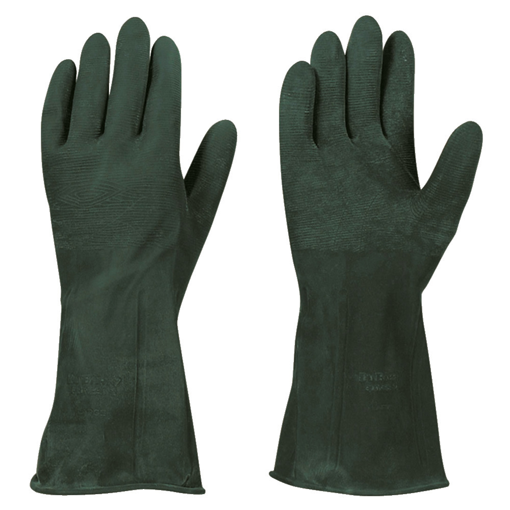 Hochwertiger Handschuh mit hoher Reiß-, Zug- und Abriebfestigkeit. Beständig gegen die meisten chemischen Laugen und Säuren. Stärke 0,6 mm, Länge 31 cm, Größen M, L, XL.