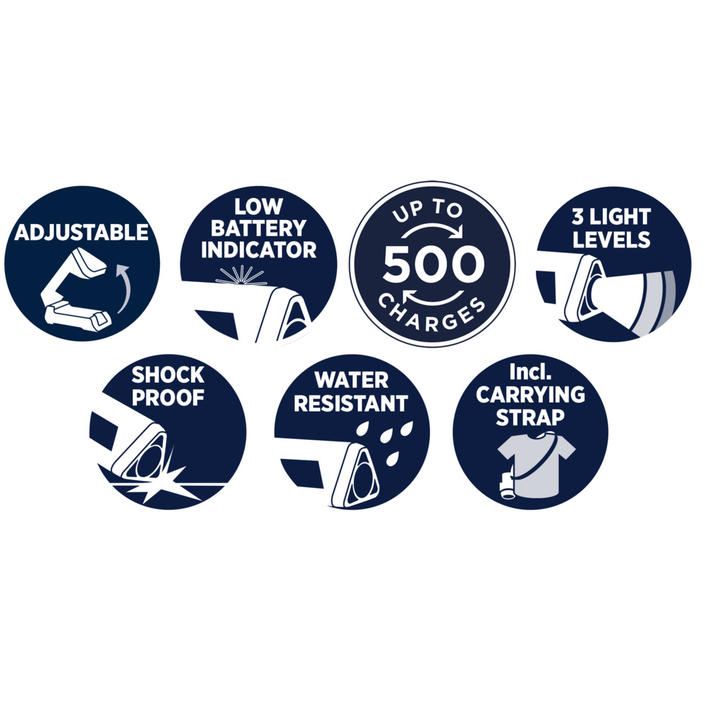 Ein absolutes Multitalent Diese Lampe bietet in einer Kombination aus Cree Leds und Midlevel Leds 550 Lm und bis zu 460 m Reichweite, mit einer Leuchtdauer bis zu 16h ist dies eine TOP Lampe,inkl. Micro USB Ladekabel, kann bis zu 500x wieder aufgeladen werden, im Griff integrierte LED Anzeige für Status der Batterie, verstellbarer Leuchtkopf mit 3-fachen Leucht Modi