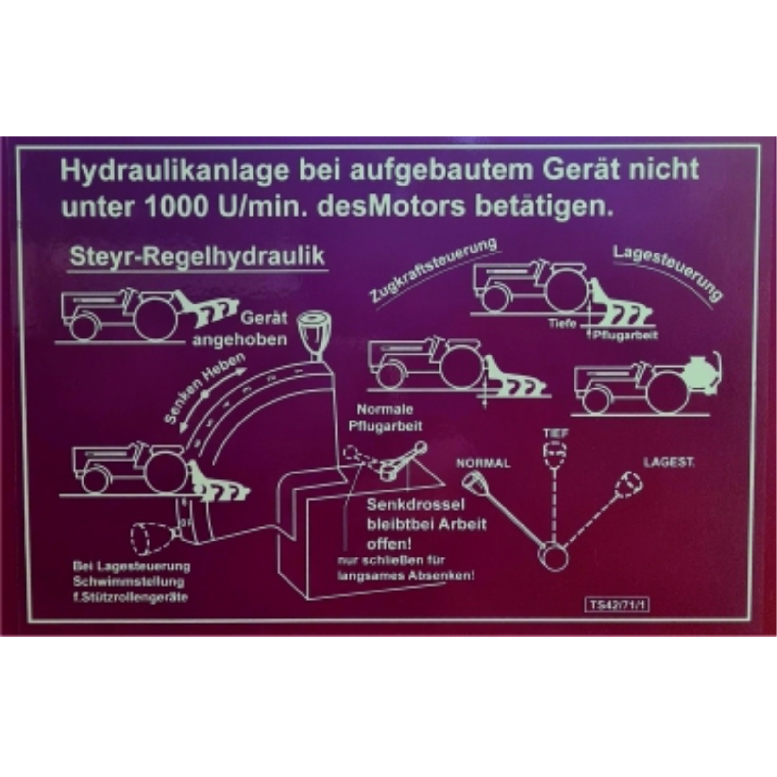 Aufkleber Regelhydraulik zur Beschreibung der Funktion der Regelhydraulik