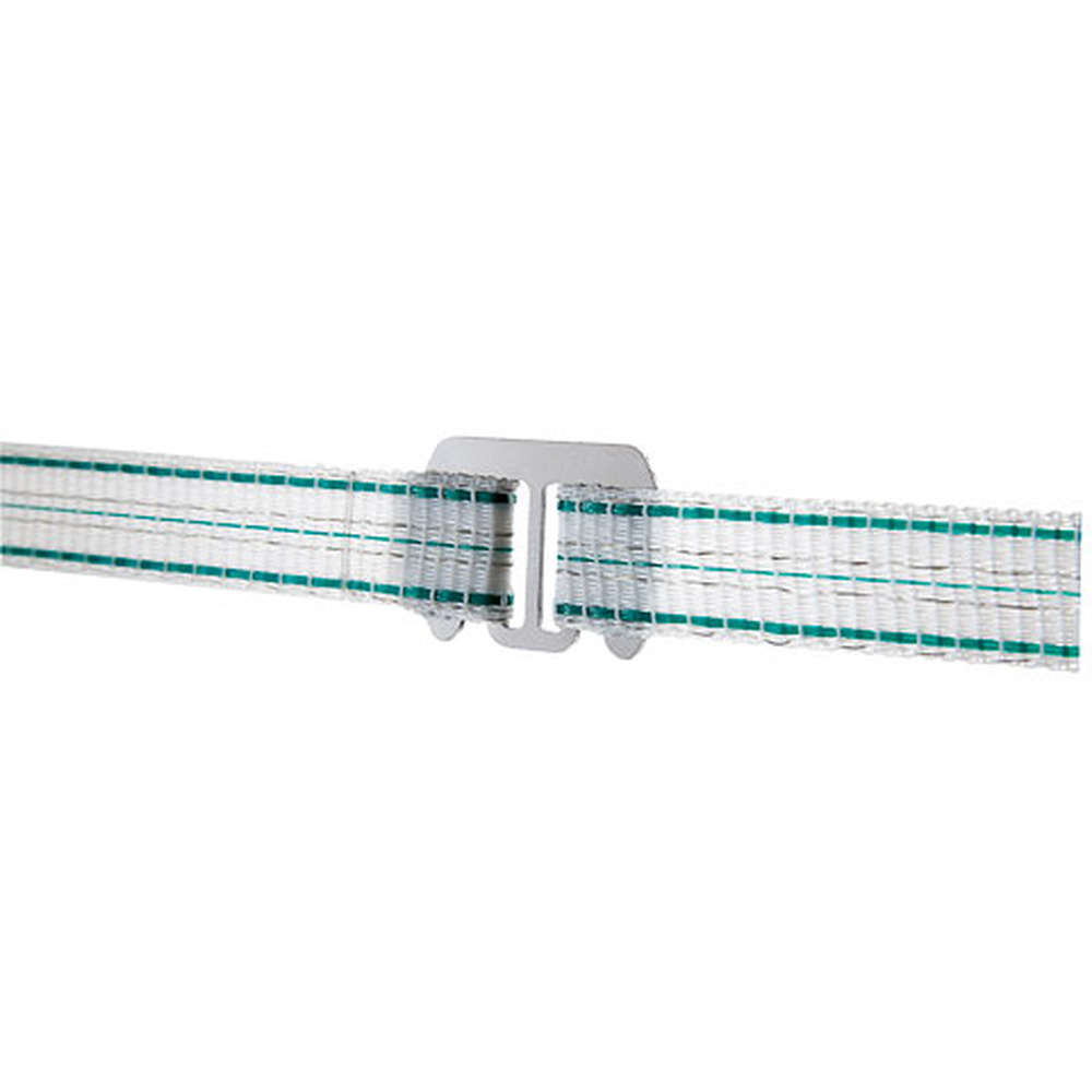 Mit der neuen Bandverbinderplatte für Bänder bis 20 mm erreichen Sie eine durchgehende Elektrifizierung bei der Verbindung von zwei Bandenden. Die Verbinderplatte ist aus nichtrostendem Edelstahl. Auch zum Einhängen am Torgriff geeignet. 5 Stück/Packung