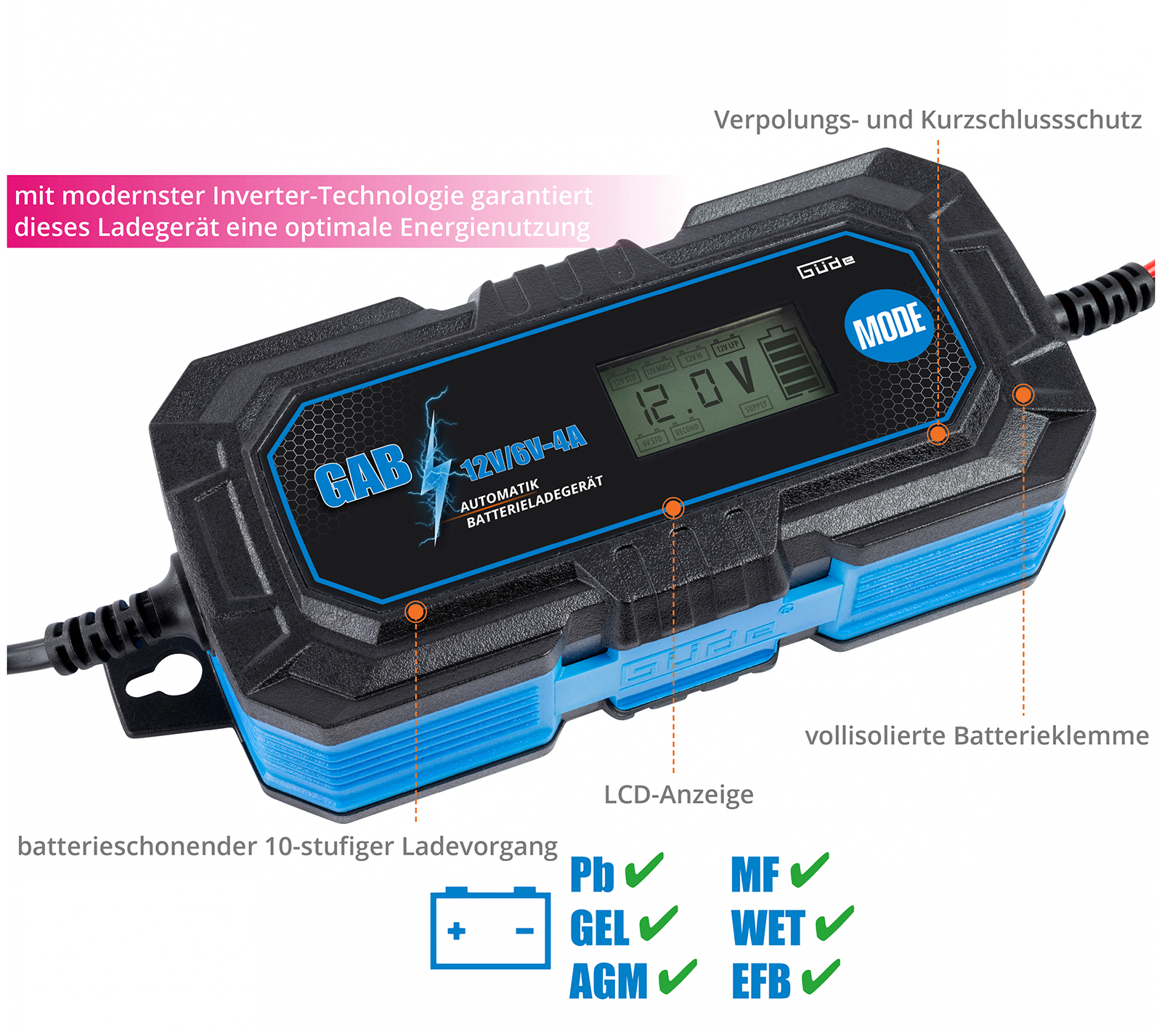 Produktinformationen "Batterieladegerät GAB 12/6V-4A"