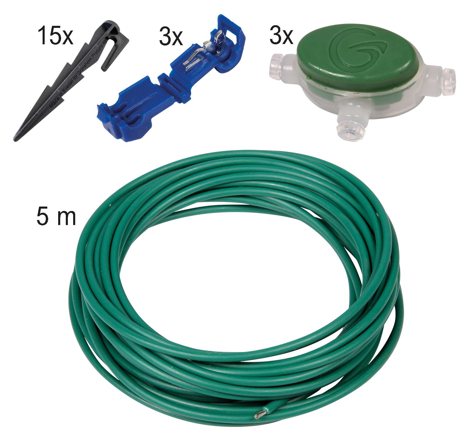 Das Reparaturset Rasenroboter Begrenzungskabel!Für den Fall, dass der Mähroboter Begrenzungsdraht versehentlich durchtrennt wurde, oder es muss aus anderen Gründen repariert werden.Das Set enthält fünf Meter verzinntes Premium-Kabel, 15 Rasennägel, 3 Anschlüsse für die Ladestation und 3 Kabelverbinder-> ein Set mit allen Teilen, die für die Reparatur erforderlich sind.Das Paket beinhaltet:5 m Premium-Begrenzungsdraht15 Kabelpfähle3 Spleiße3 Ladestationsanschlüsse