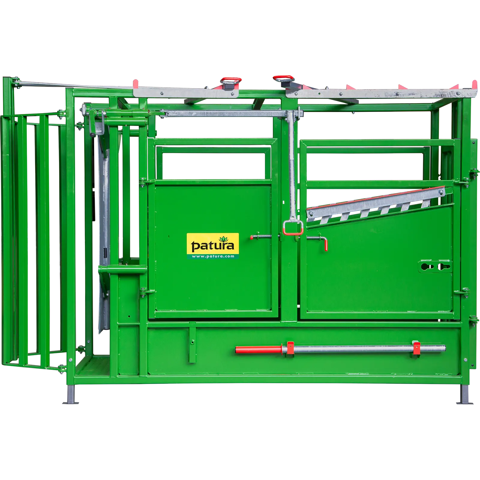 Fangkorb Fangkorb und zentrale Einhand-Bedienung für sicheres Fangen Sichere Arretierung des Fangkorbs Auslass der Tiere durch weit öffnende FrontpartieHalsfangrahmen