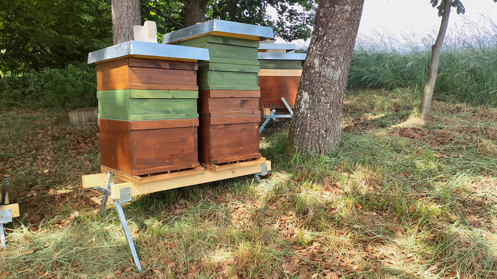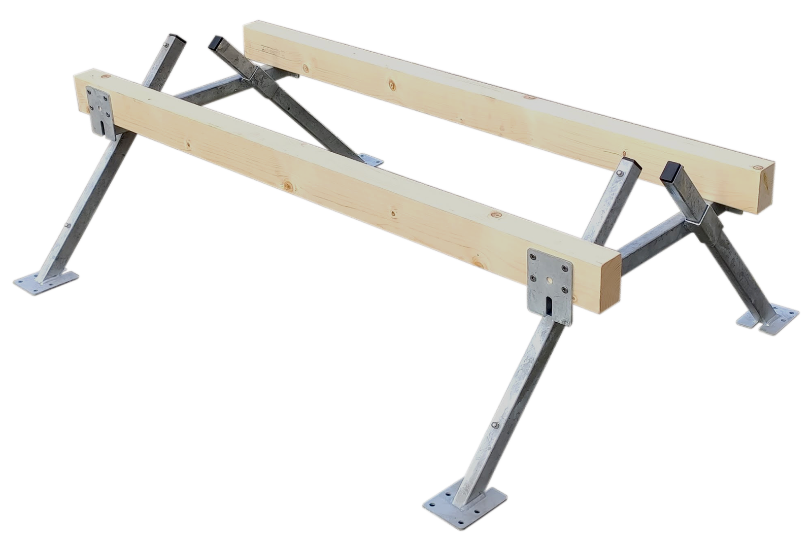 Dieser Beutenbock für bis zu 4 Beuten ist feuerverzinkt ausgeführt.Leicht aufstellbar, dadurch als Wanderbock, aber auch als Festaufstellung bestens geeignet.Unebenes Gelände lässt sich mit den höhenverstellbaren Beinen einfach und schnell ausgleichen.Durch die schräge Anordnung sind sie selbsthemmend. Wenn sie also mit Gewicht (Beute) belastet werden, blockieren sich die Beine selbst.Die Anzahl der Beuten, die getragen werden können richtet sich nach den Dimensionen der Holzbalken (nicht im Lieferumfang in begriffen). Ab 5 Beuten empfiehlt es sich einen zusätzlichen Ständer in der Mitte anzubringen.Außerdem verfügt der Beutenständer über eingebaute, gefederte Verriegelungsbolzen. Dadurch lässt er sich z.B. bei einer Wanderung schnell in die Transportstellung umbauen.Abmessungen (bei einer Holzstärke von 70 x 45 mm):