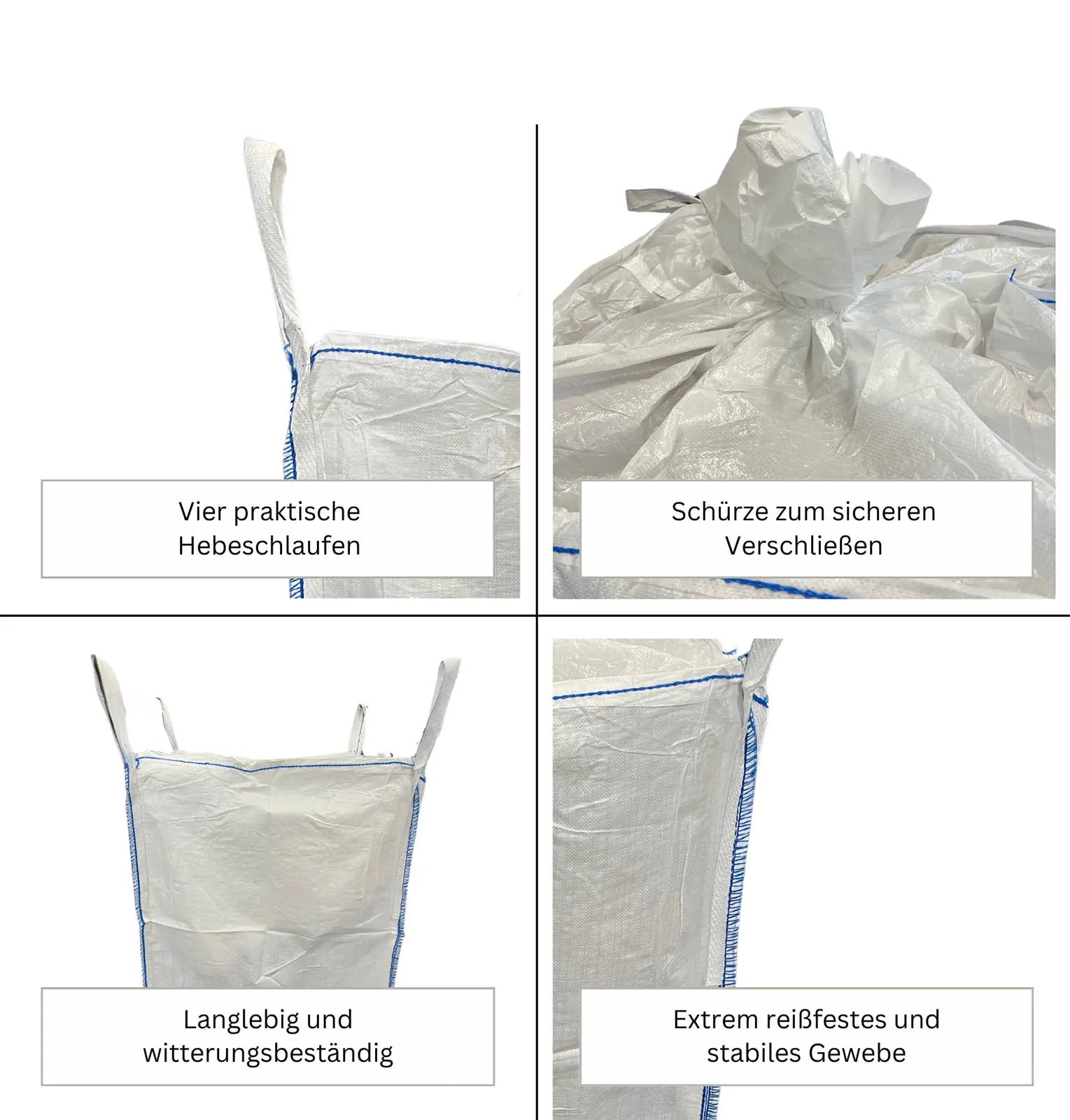 Großsack aus PP-Bändchengewebe, weiß unbeschichtet, UV-stabilisiert.