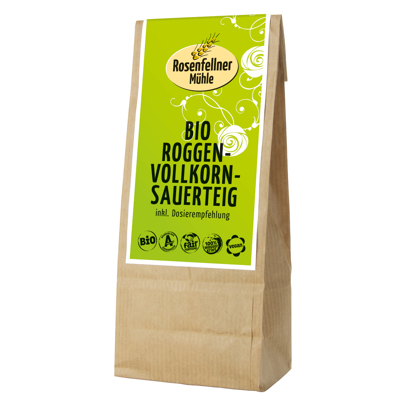 Natürlicher Bio Sauerteig zur Herstellung von rustikalen, dunklen Roggen(vollkorn)- und Mischbroten.Dosierung: 50 - 70 g je Kilo Mehl.Zutaten: Roggenvollkornmehl aus kontrolliert biologischem Anbau, WasserInhalt: 170 genthält Gluten und Milch von Säugetieren
