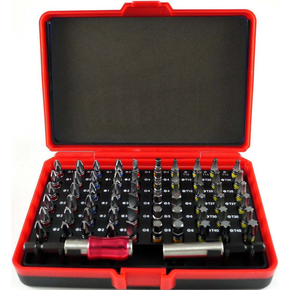 Aktionsbox, 62-tlg. mit den wichtigsten Größen, sowie zwei Bithaltern.Inhalt: Schlitz 4-6 mm (je 3x), PH 1, PH 3 (je 3x), PH 2 (6x) PZ 1, PZ 3 (je 3x), PZ 2 (6x) Inbus 4-5-6 mm (je 3x) T-10-15-20-25-27-30-40 (je 3x) Bithalter rostfrei 60 mm Bithalter mit Magnet und Rückzugauswurf, Länge: 65 mm