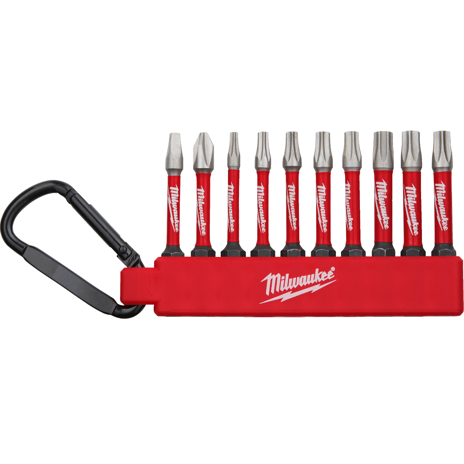 Auf Kunststoffhalter mit praktischem Karabiner zum Befestigen an Gürtelschlaufe oder dgl. Lasergehärtete Bitspitze für präzise Passgenauigkeit und längere Lebensdauer.