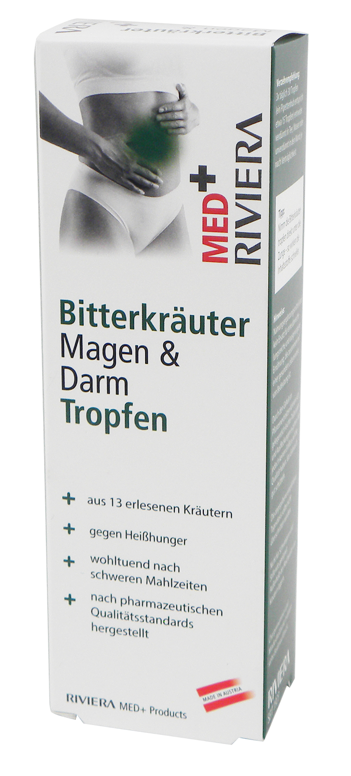 Die Bitterkräuter Magen & Darm Tropfen von RIVIERA Med+ vereinen die Kraft von 13 sorgsam ausgewählten Kräutern. Sie sind ideal zur Unterstützung nach üppigen Mahlzeiten und helfen dabei, Heißhunger auf natürliche Weise zu regulieren.