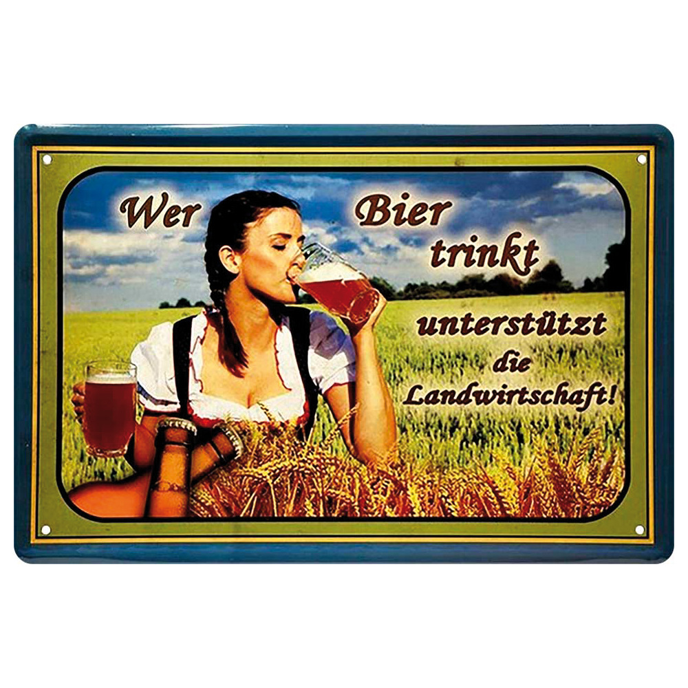 Produktinformationen "Blechschild Wer Bier trinkt unterstützt die Landwirtschaft - Dirndl"