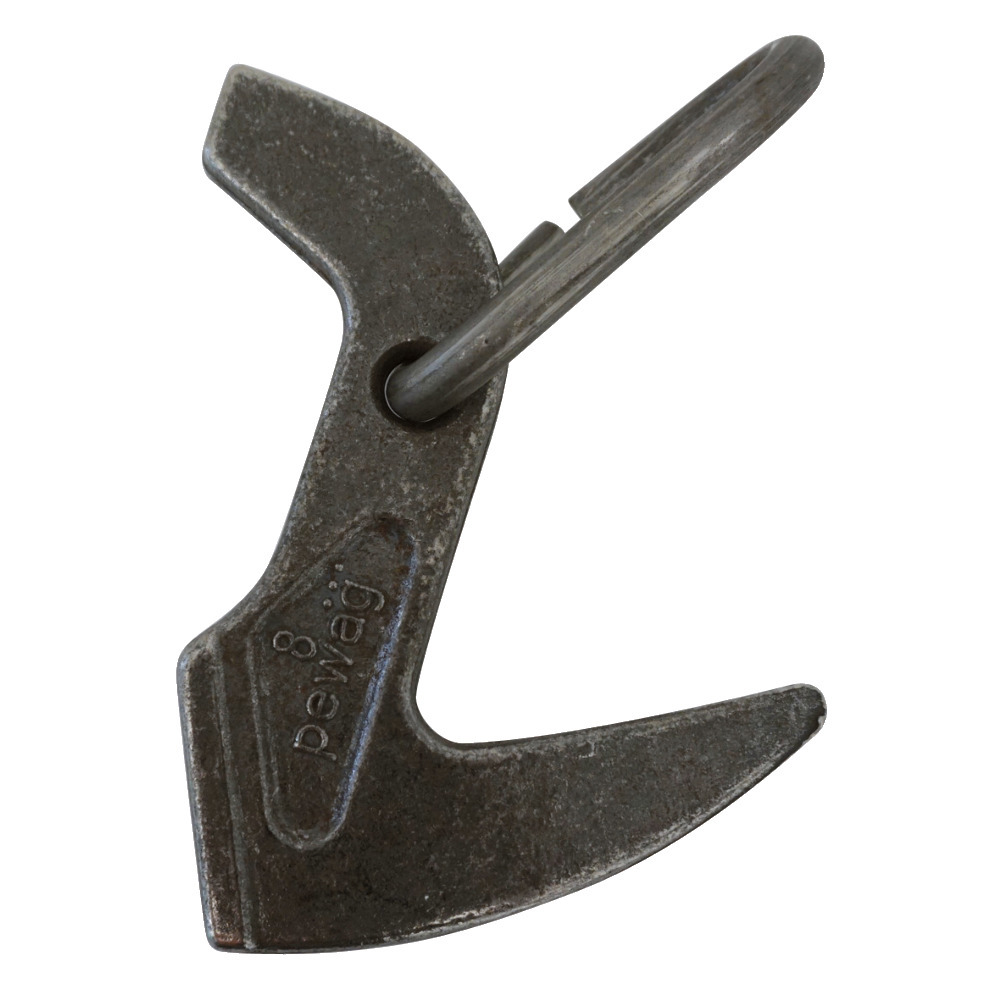 Aus Stahl vergütet, mit ungeschweißtem Glied. Einfach Haken ins Holz schlagen und rücken.