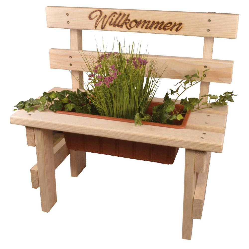 Produktinformationen "Blumenbank Fichte massiv 'Willkommen'"