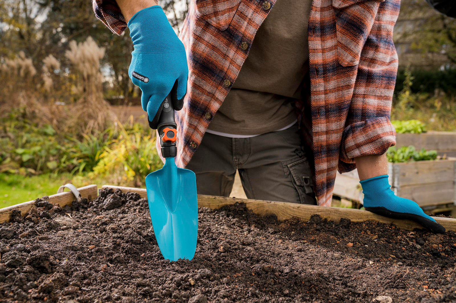 Mit der GARDENA combisystem-Blumenkelle mit Handgriff kannst Du einfach Blumen in Blumenkästen, Pflanzkübeln und Beeten an- und umpflanzen.