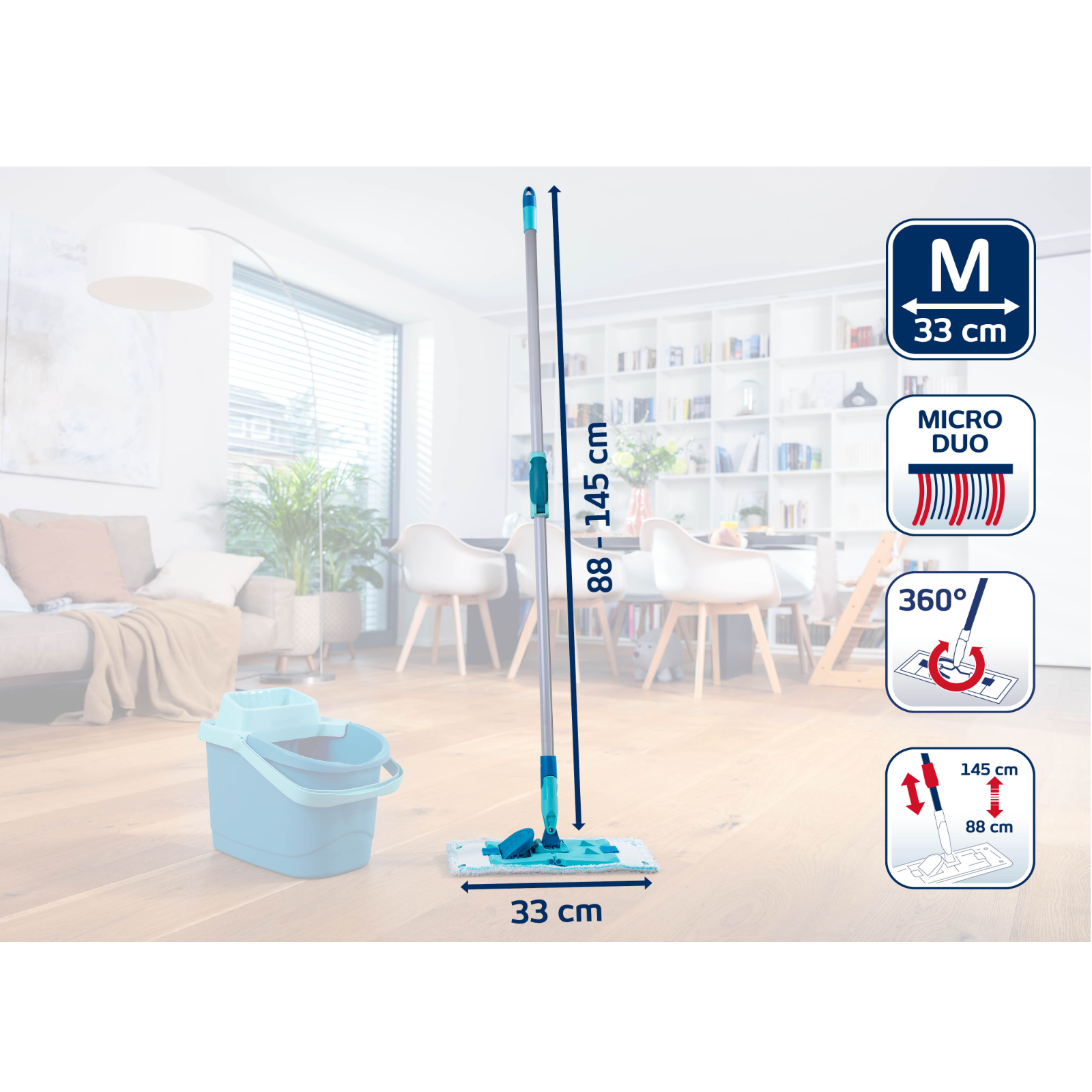 Wischbezug micro duo für das Set CLEAN TWIST M ergo/Power Clean MLanglebiger und nachhaltiger Wischbezug: micro duo bei 60 °C bis zu 200x in der Waschmaschine waschbarReinigungsstarkes 2-Faser-System aus Microfaser mit leicht erhöhten Borsten für die gründliche Reinigung aller BodenartenBesonders hohe Aufnahme von Schmutz und SchmutzwasserTaschen-Klettkombination für einfaches Anbringen und Entfernen des Bezugs, bei gleichzeitig sicherem Halt während des AusschleudernsWischbreite: 33 cm