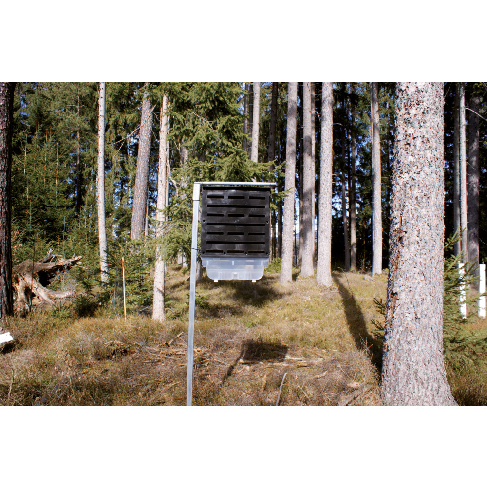 Trockenfang: Ideal für das Monitoring der Käferpopulation. Die Fangschublade muss regelmäßig entleert werden. Die Ausläufe der Wanne bleiben offen, damit Regenwasser abfließen kann.