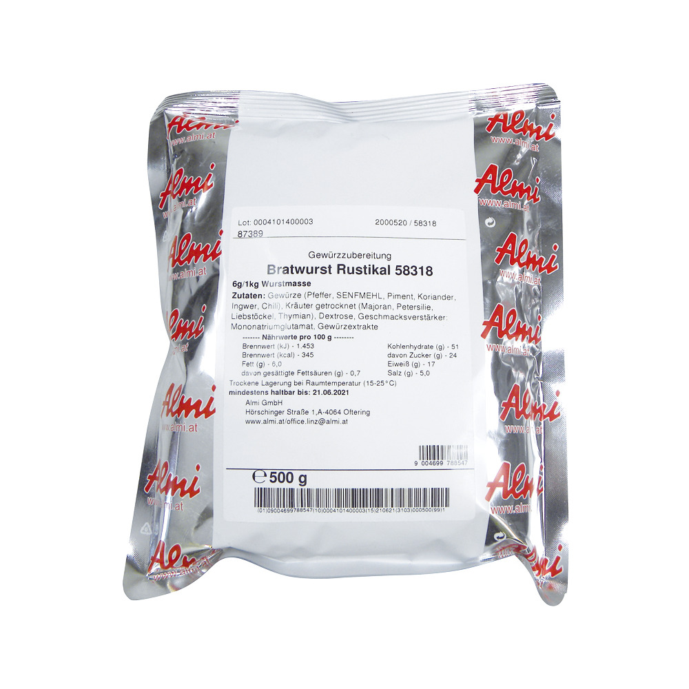Qualität von höchster Güte, aromageschützt verpackt. Hochwertige Rohstoffe sind die Basis für erstklassige Produktqualität.0,5 kg, 6 g/kg Wurstmasse.