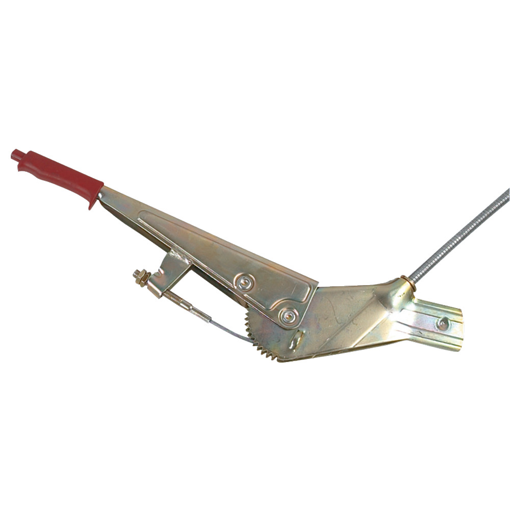 Hülle 2300 mm lang, Ø 12 mm, Seil 5200 mm lang, Ø 5 mm, inkl. EinstecktascheUmsteckbremszug für Fahrzeuge bis zulässiges Gesamtgewicht 4000 kg, gelb chrom, Laschenquerschnitt 51x10 mm.