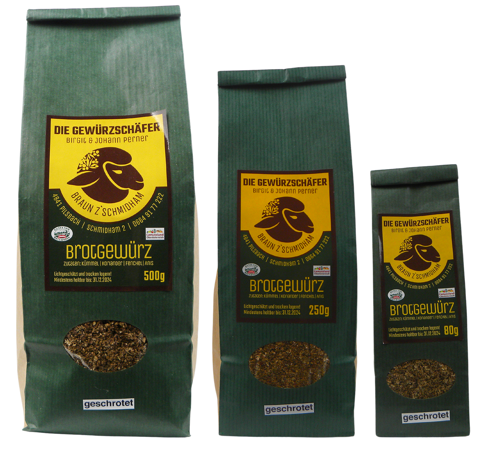 Regionales frisch geschrotetes Brotgewürz. Für alle Brotarten geeignet. Sehr ergiebig.Zutaten: Kümmel, Koriander, Fenchel, Anis