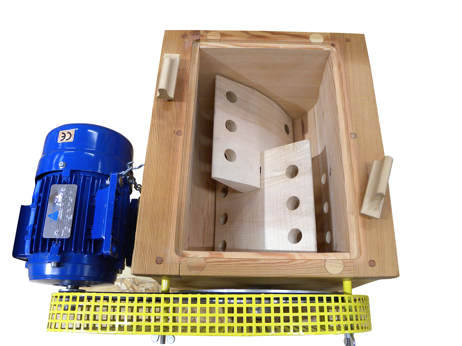 230V, 0,37 kW, 910 U/min. Mit Holzrührwerk und Ablasshahn, Schauglas, Handkurbel, Rührwelle herausnehmbar. Aus bestem Kiefernholz gefertigt, Ausführung 10 L (2 bis 8 L Rahm), Riemenschutz, Hergestellt in Österreich