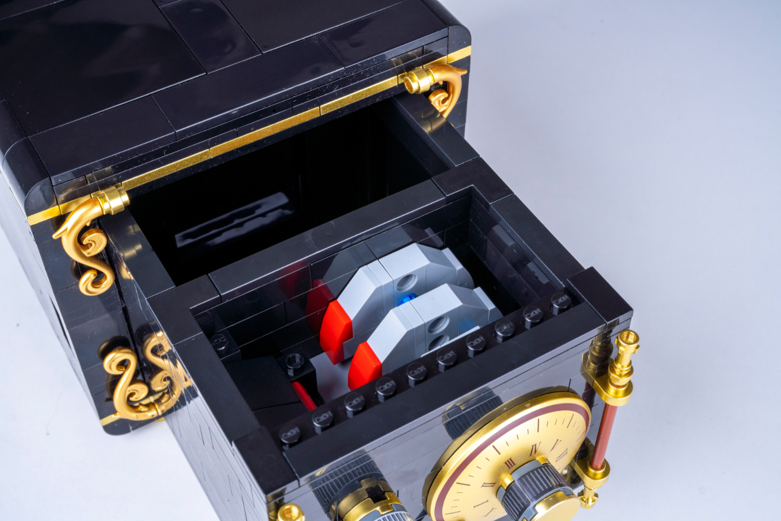 Aus 442 Klemmbausteinen entsteht ein detailgetreues Modell im Maßstab 1:4 – mit realistischem Design, bedruckten Teilen und mechanischem Schloss mit drei Zahlenscheiben.