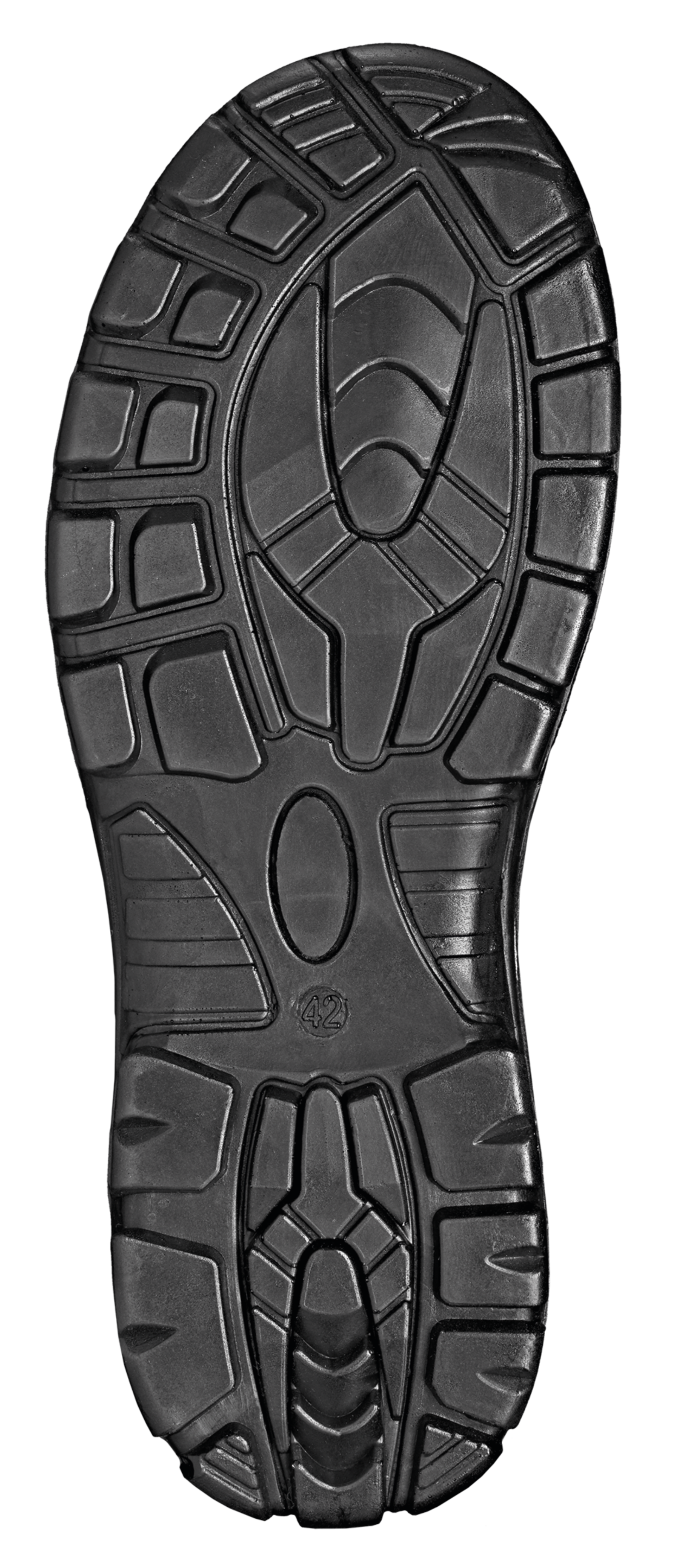 Die zweischichtige PU-Sohle ist antistatisch, rutschhemmend sowie öl- und säurebeständig – ideal für glatte oder nasse Böden.