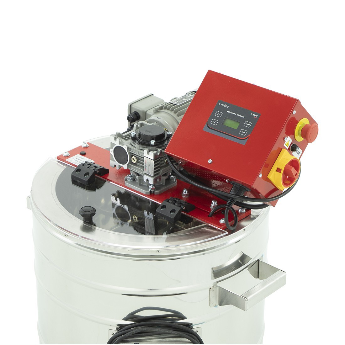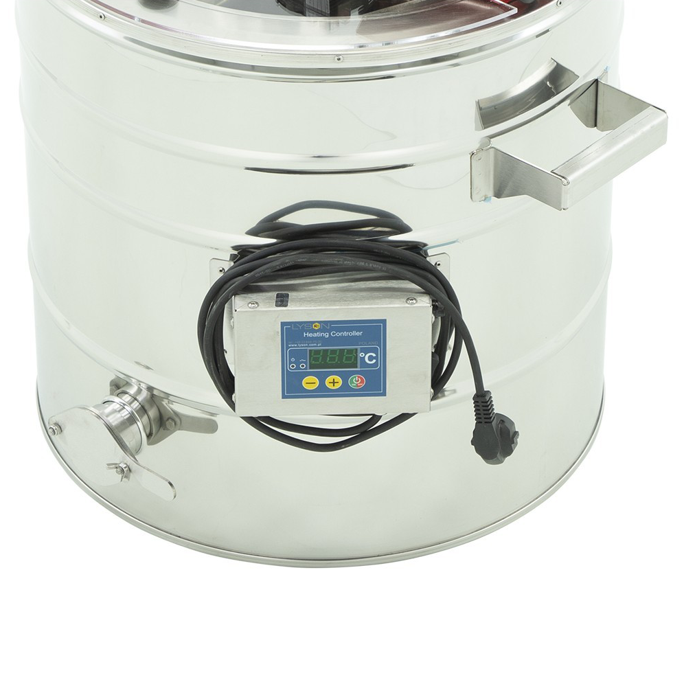 Rührgerät 230 V für die Herstellung von Cremehonig mit Quetschhahn, Rühreinsatz und Behälter aus Edelstahl und Heizmantel zum Auftauen.Steuerung über eine Automatiksteuerung.Das Rühren sollte in Zyklen ablaufen, dabei wird mehrmals täglich etwas 10-15min gerührt.Der Honig wird während des gesamten Prozesses mehrmals gemischt.Je nach Honigsorte kann es von mehreren Tagen bis zu einigen Wochen dauern bis zur Vollendung des perfekten Cremehonigs.