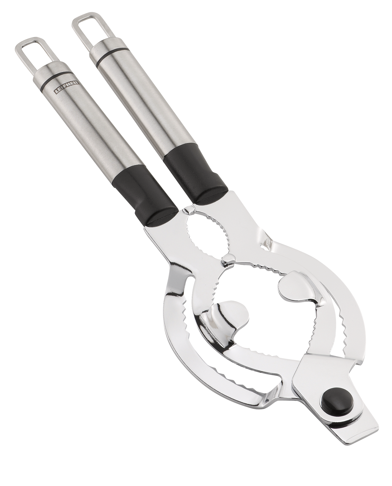 Mit dem Deckelöffner aus der Edelstahl-Serie von Leifheit lassen sich Deckel von Flaschen, Gläsern, Tuben und mehr mühelos öffnen.Der Multi-Deckelöffner überzeugt durch seine einfache und unkomplizierte Handhabung.Dank der ovalen Griffe liegt er besonders gut in der Hand, was das Öffnen von Schraubgläsern erleichtert.Auch optisch ist der Deckelöffner ein Highlight:Die Kombination aus hochwertigem Edelstahl und schwarzem Kunststoff verleiht ihm ein stilvolles Design.An einer Hakenleiste aufgehängt, ist der Deckelöffner aus der Edelstahl-Serie von Leifheit stets griffbereit und platzsparend verstaut.Maße: 31,5 x 11 x 2 cm.