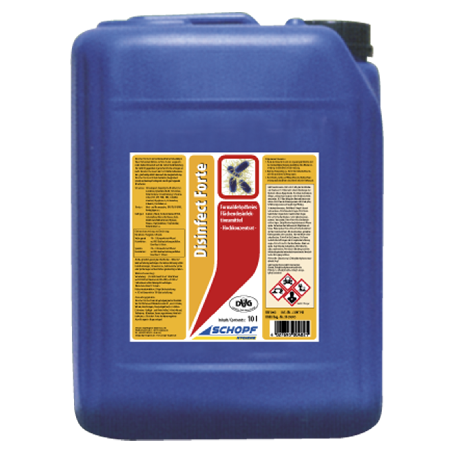 Disinfect forte ist ein hochkonzentriertes formaldehydfreies Flächendesinfektionsmittel mit einer ausgezeichneten Tiefenwirksamkeit auch bei starker Eiweißbelastung. Die Stabilität gegenüber organischer Verschmutzungen erreicht Disinfect forte mit der C5-C10-Wirkstoffkombination, gleichzeitig erhöht diese auch die Langzeitwirkung. Auch zum Einsatz in der Desinfektionsmatte.Wirksam gegen die Erreger der Maul- und Klauenseuche!Ideal zum Einsatz in der Desinfektionsmatte!DVG-gelistetAnwendungskonzentration: 1 – 2%Mindestaufwandmenge:0,4 l anwendungsfertige Lösung/m². Nachspülen mit 8 l Trinkwasser/m².Biozidprodukte vorsichtig verwenden. Vor Gebrauch stets Etikett und Produktinformationen lesen.