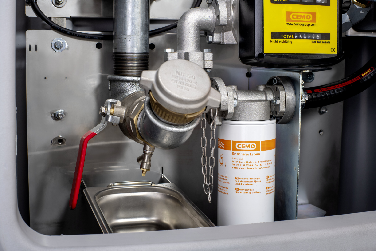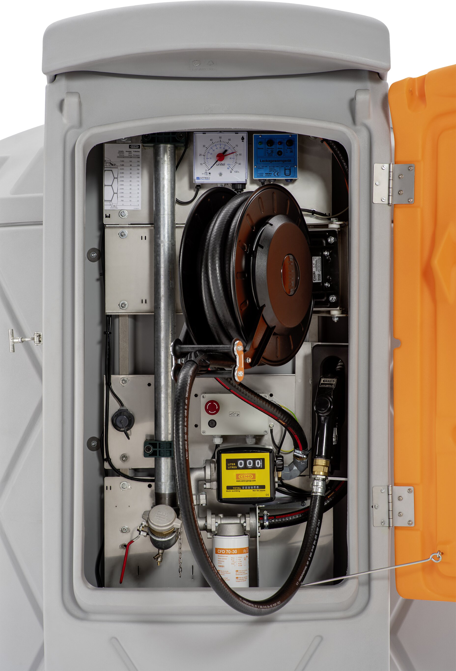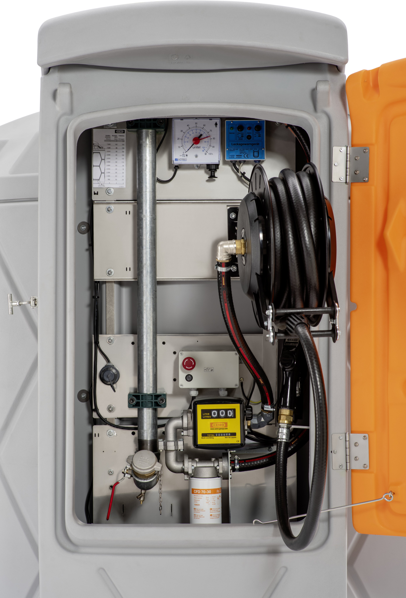 Der Tank entspricht der allgemeinen bauaufsichtlicher Zulassung Z-40.21-565. Für den Outdoorbereich gedachter und zugelassener Tank mit Befüllanschluss mit TW-Kupplung und Grenzwertgeber, Entlüftungsklappe, Revisionsöffnung mit Klappdeckel, Entnahmeleitung, Be-und Entlüftung sowie natürlich einer Füllstandsanzeige. Der Tankvorgang erfolgt über eine für Diesel, Biodiesel und Heizöl geeignete CENTRI-Tauchpumpe mit 800Watt/230 Volt und einer Förderleistung von 80 L/min. Für schnelles Betanken bei großen Tankvolumen und effizientes Arbeiten in stressigen Zeiten. Die Tankstelle verfügt über einen abschließbaren Armaturenschrank mit klappbarer Tür die gleichzeitig als Wetterschutz fungiert. Die Premium ist komplett Ausgestattet mit Tank, Pumpe, Schlauchaufroller mit 8m 1 Zoll Dieselschlauch, automatischer Zapfpistole mit 80L/min Durchfluss, Zählwerk sowie Filter mit Wasserabscheider.