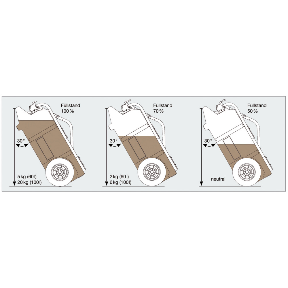 • Trolley 100 L: Räder Ø 300 mm, luftbereift, geländegängig