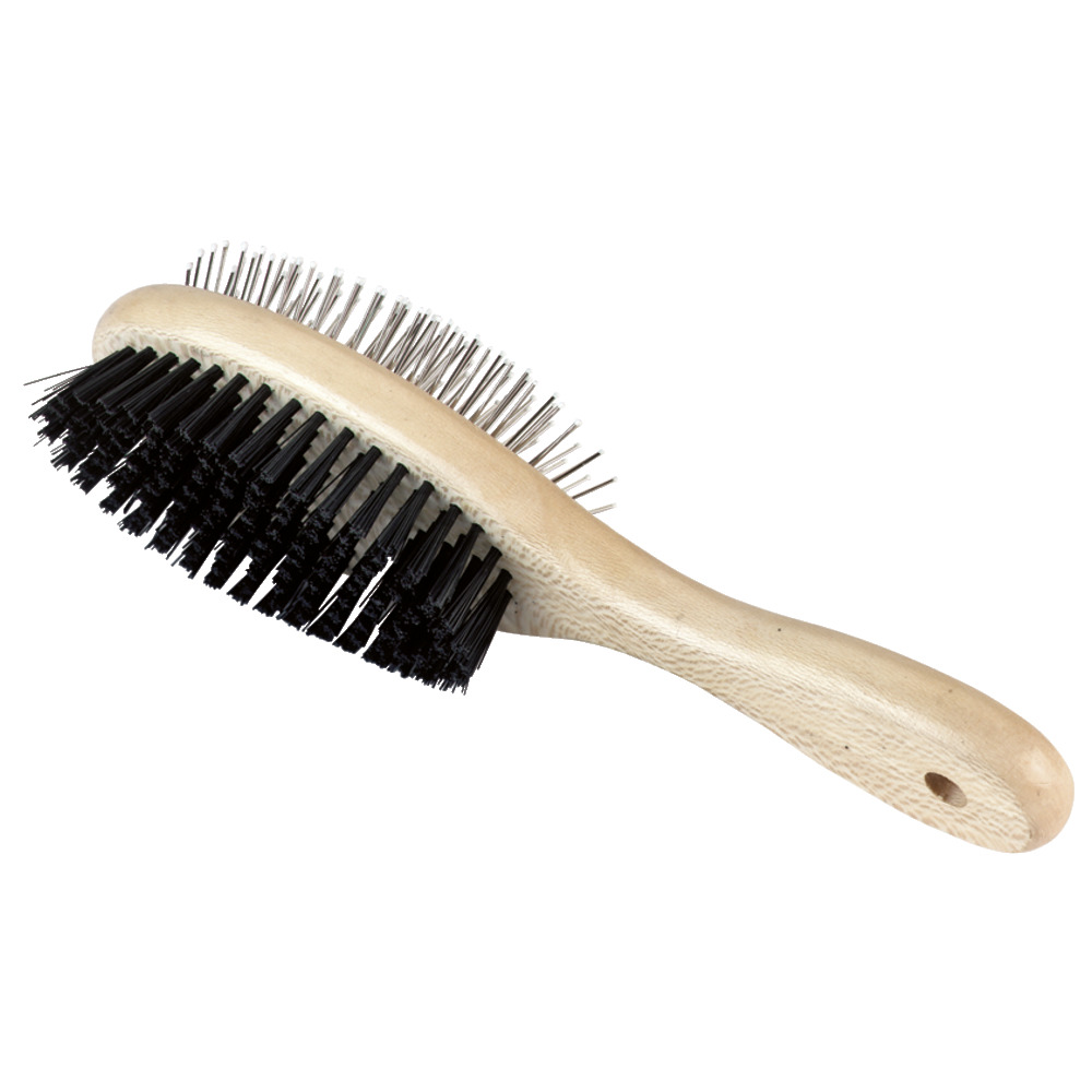 Die Metallseite der Bürste reinigt das glatte Fell, die Schutzkappen schützen dabei die Haut. Die Borstenseite ermöglicht anschließend ein angenehmes Nacharbeiten.