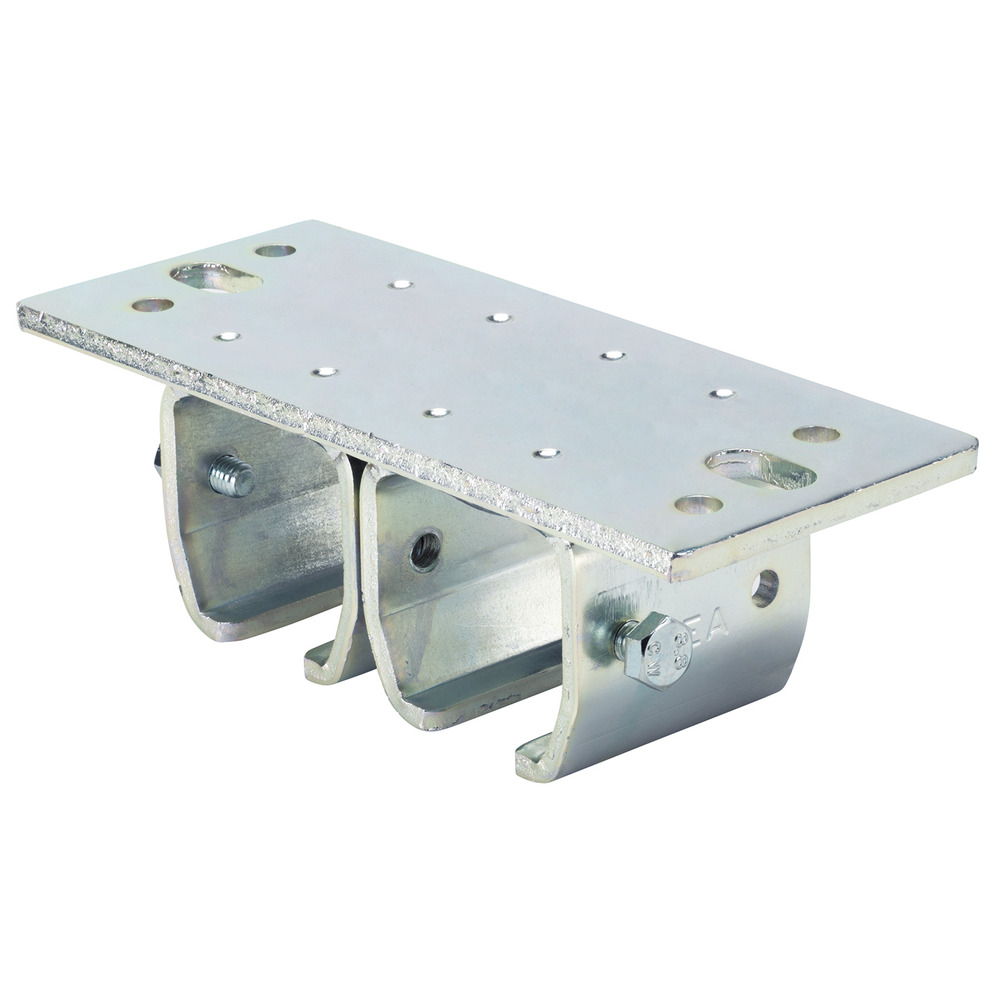 Zum Befestigen parallel laufender Schienen direkt an der Decke, beispielsweise bei Türstöcken, Trägern, etc. Verzinkte Ausführung, mit Flanschplatte und 6Loch Individual Befestigungs-Möglichkeit.