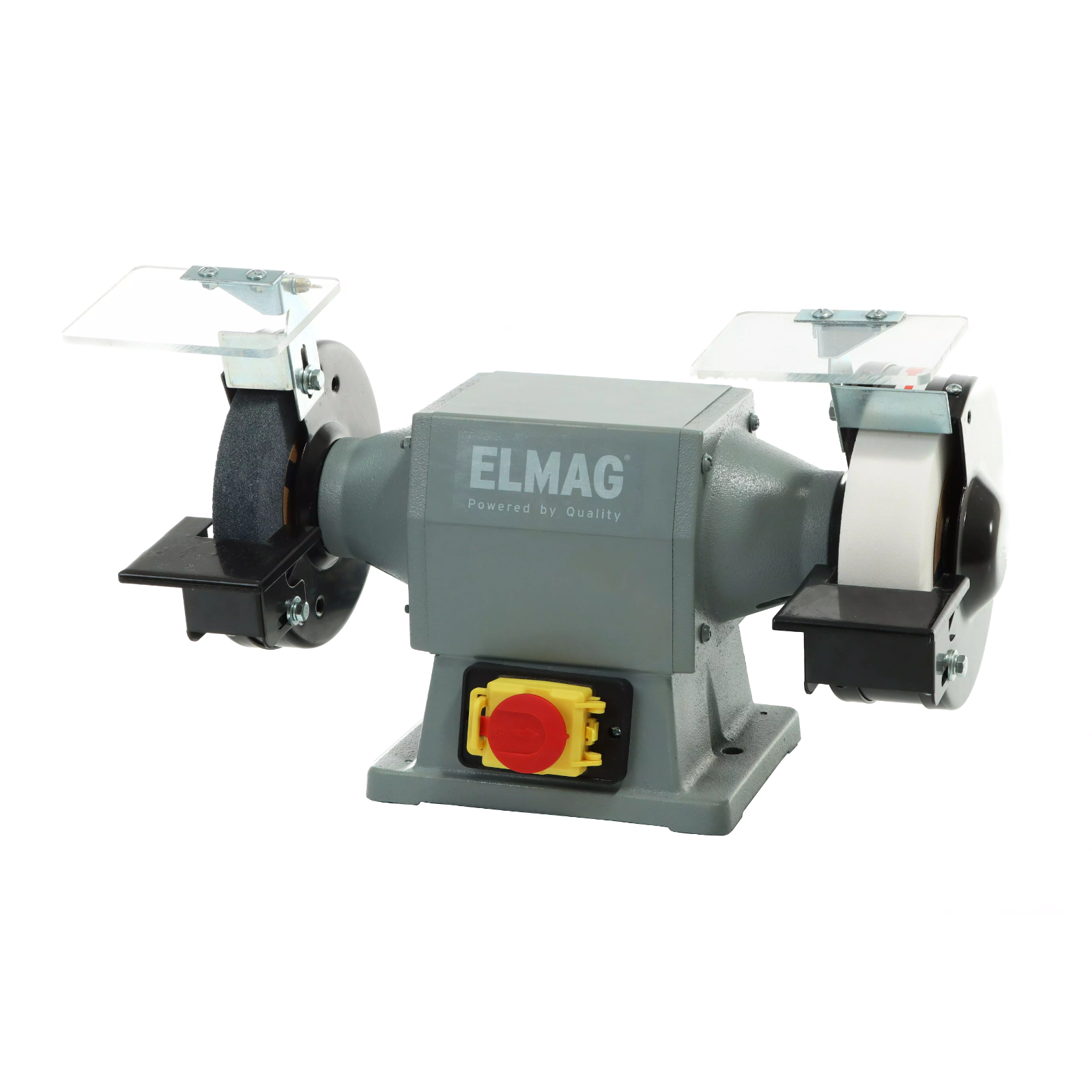 Werkstattschleifer mit je einer Schleifscheibe grob 150x20x25mm und Schleifscheibe fein 150x40x25mm.