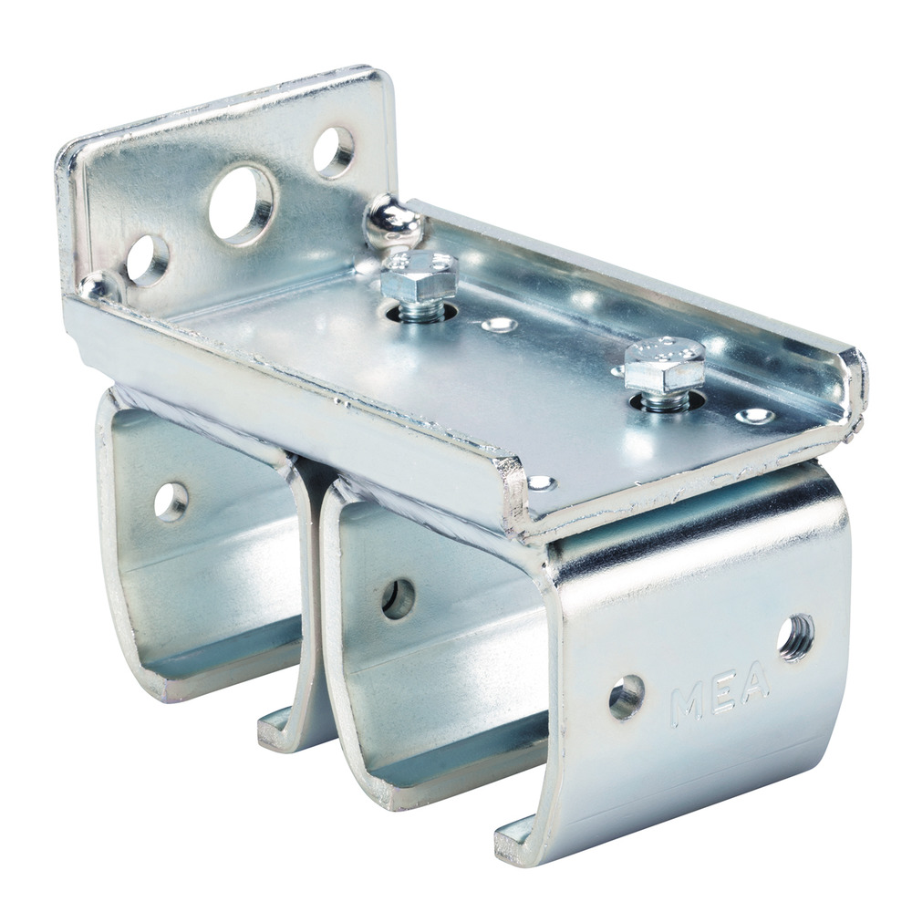Ideale Befestigung von zwei hintereinander laufenden Schienensystemen. Kinderleicht am Mauerwerk befestigt, galvanisch verzinkt.
