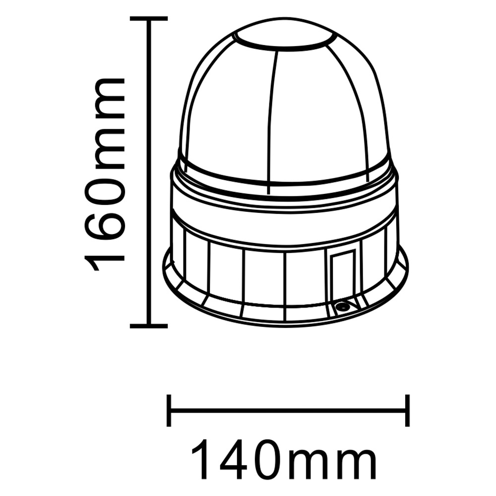 Warnleuchte mit Halogenlampe H1 12V/55W Festmontage mit flachem Sockel, Schutzklasse IP66, Betriebstemperatur -30°C bis 60°C, Zertifizierungen: ECE R10, ECE R65, Höhe 160mm, Durchmesser 140mm, über 10.000 Betriebsstunden, Anschlusskabel 200mm