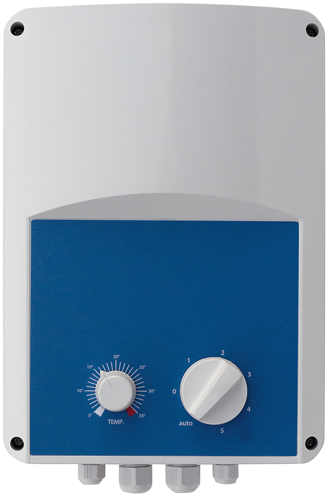 Diese innovative Steuerung ermöglicht sowohl eine automatische Anpassung der Drehzahl an die Temperatur als auch eine manuelle Einstellung der Drehzahl in fünf Stufen.