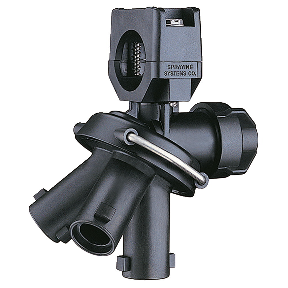 3-fach Düsenkörper für den Schnellwechsel von Düsen unterschiedlicher Größe/Spritzcharakteristik.Stopp-Position zwischen den Spritzpositionen.ChemSaver-Membranrückschlagventil für nachtropffreie Abschaltung. Serienmäßige Membrane öffnet bei 0,7 bar. Membrane standardmäßig aus EPDM, wahlweise aus Viton.Maximaler Betriebsdruck 10 bar.1/2" und 3/4" Versionen mit Innensechskant in der Oberschelle zur Befestigung an Planflächen und Gestängeprofilen.Montage über eine 9,5 mm Bohrung im Rohr.Maximaler Durchfluss 6,1 l/min bei 0,34 bar Druckabfall, 8,6 l/min bei 0,69 bar Druckabfall.